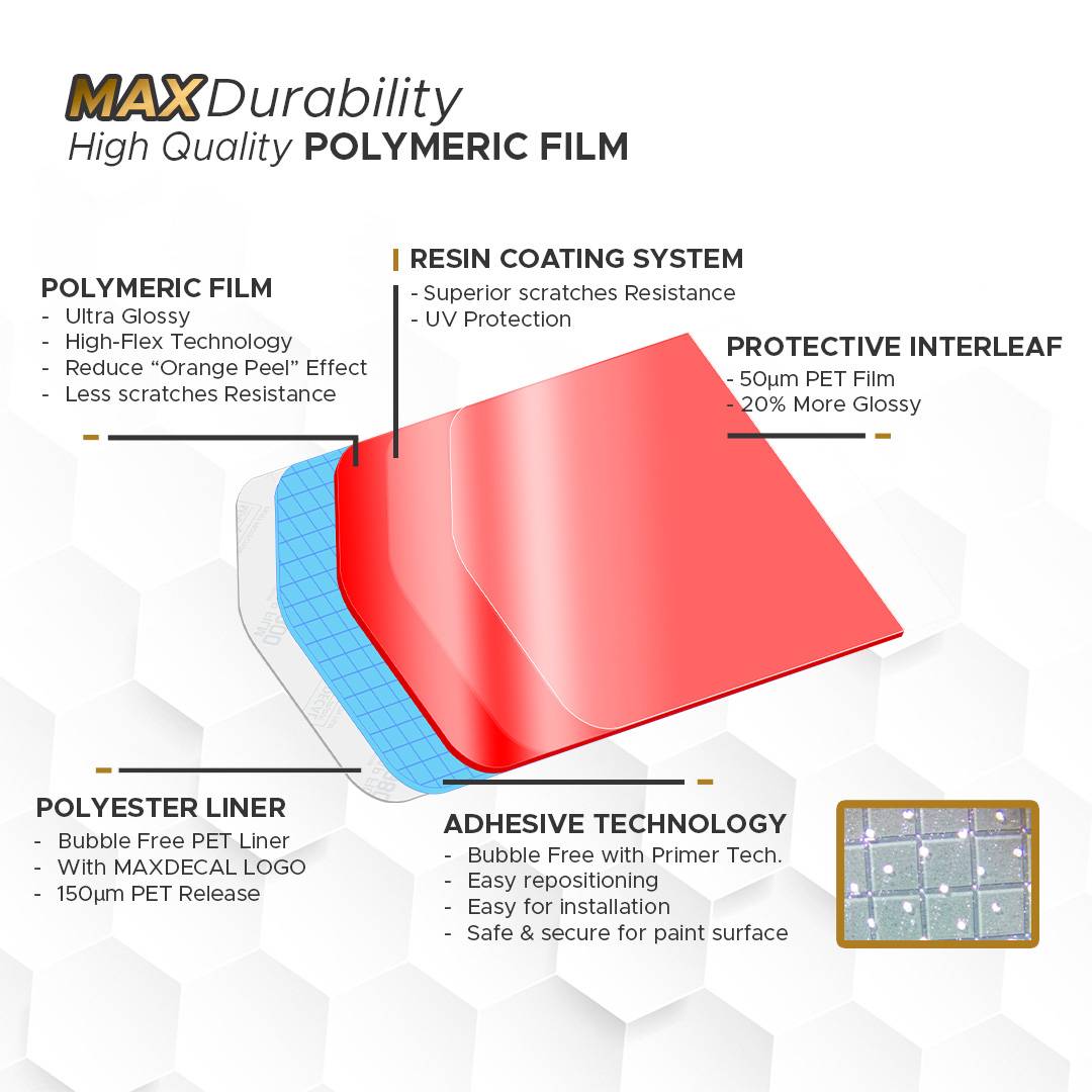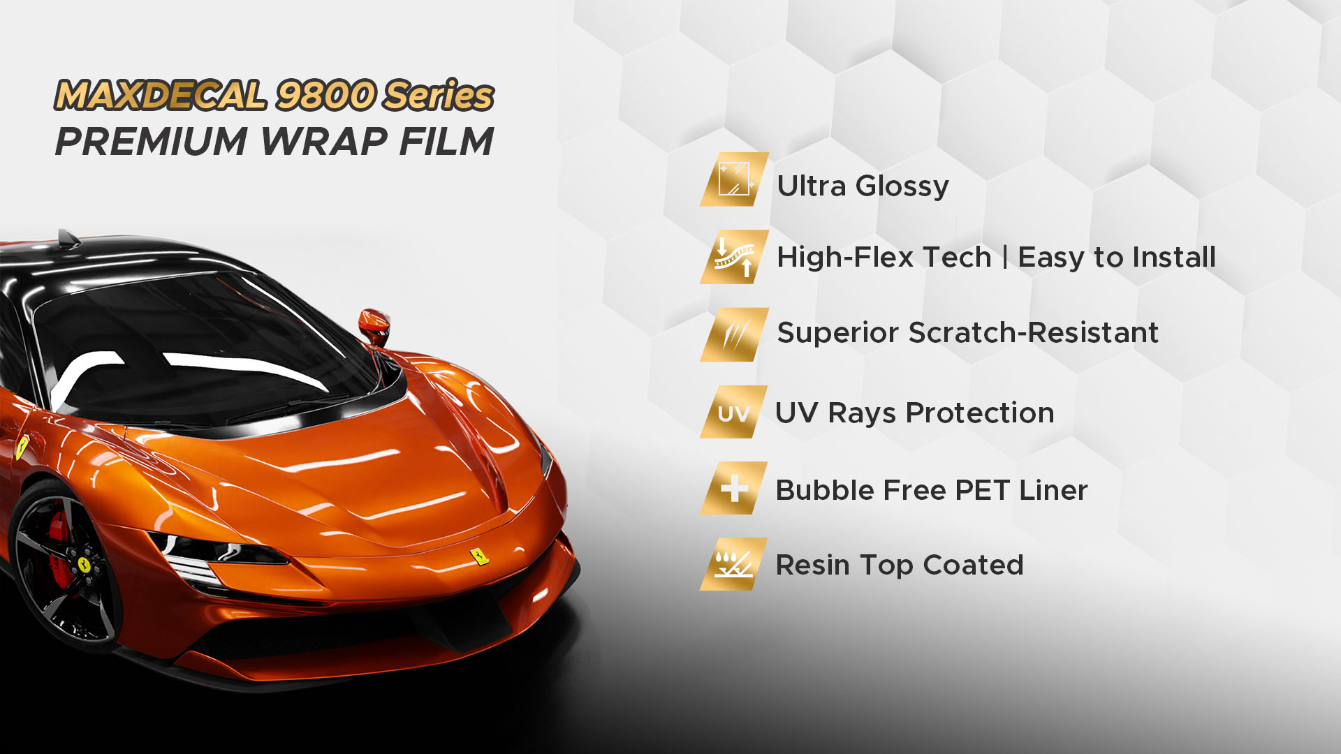 Introducing the best new product from MAXDECAL with ultra glossy surface wrap film, MAXDECAL 9800 Series comes with resin top-coated, bubble-free adhesives, and superior scratch-resistant capabilities, protecting all sides of your vehicle. MAXDECAL 9800 series is a top choice wrap film for you who really want the best for your vehicles.